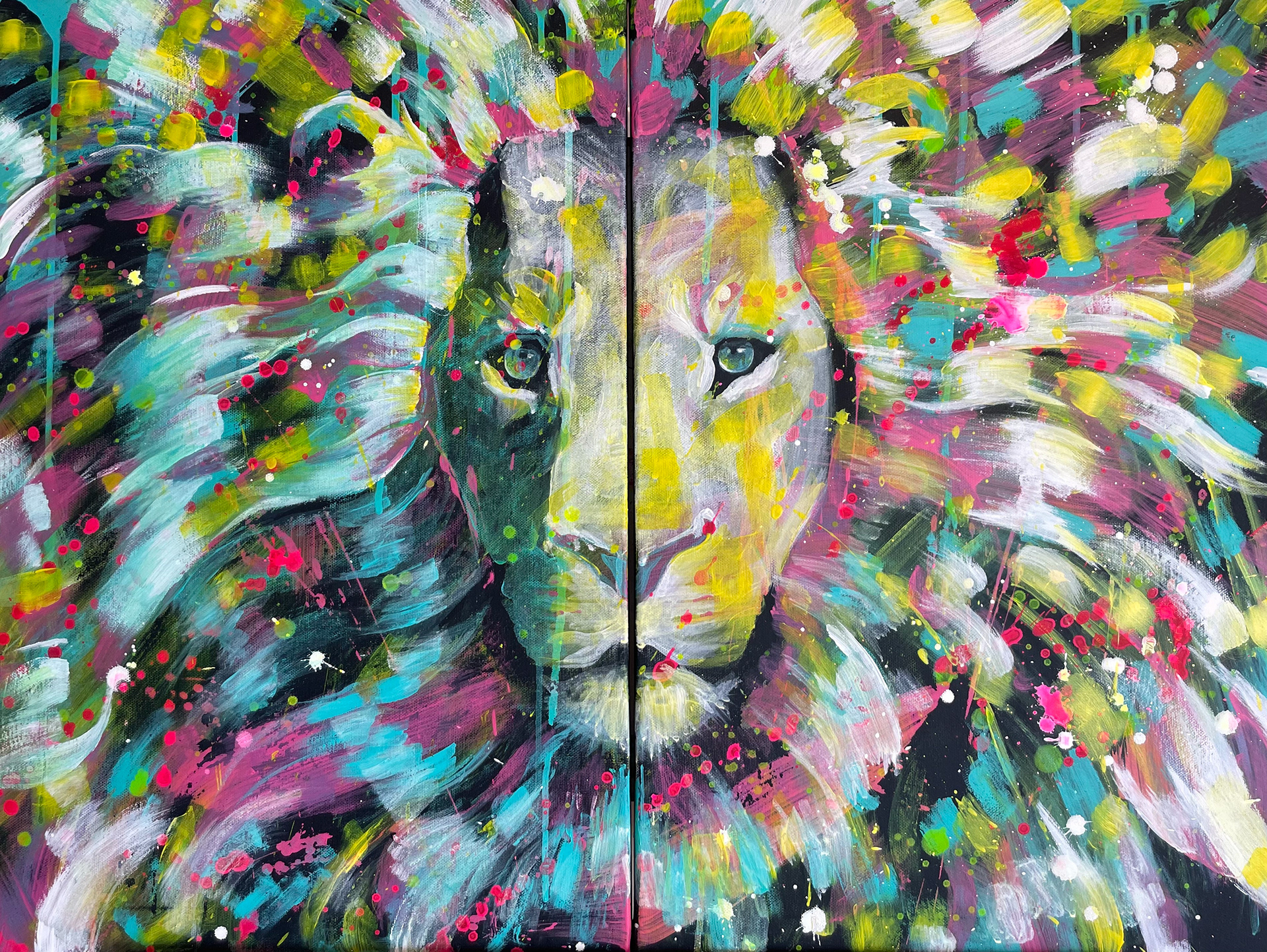 2枚のキャンバスで表現した作品です。入れ替えて飾ったり、バラバラに飾ったり、離れた家族や大切な人と片方ずつ持ったり、コミュニケーションツールとしての絵画の可能性にも目を向けて欲しいシリーズです。