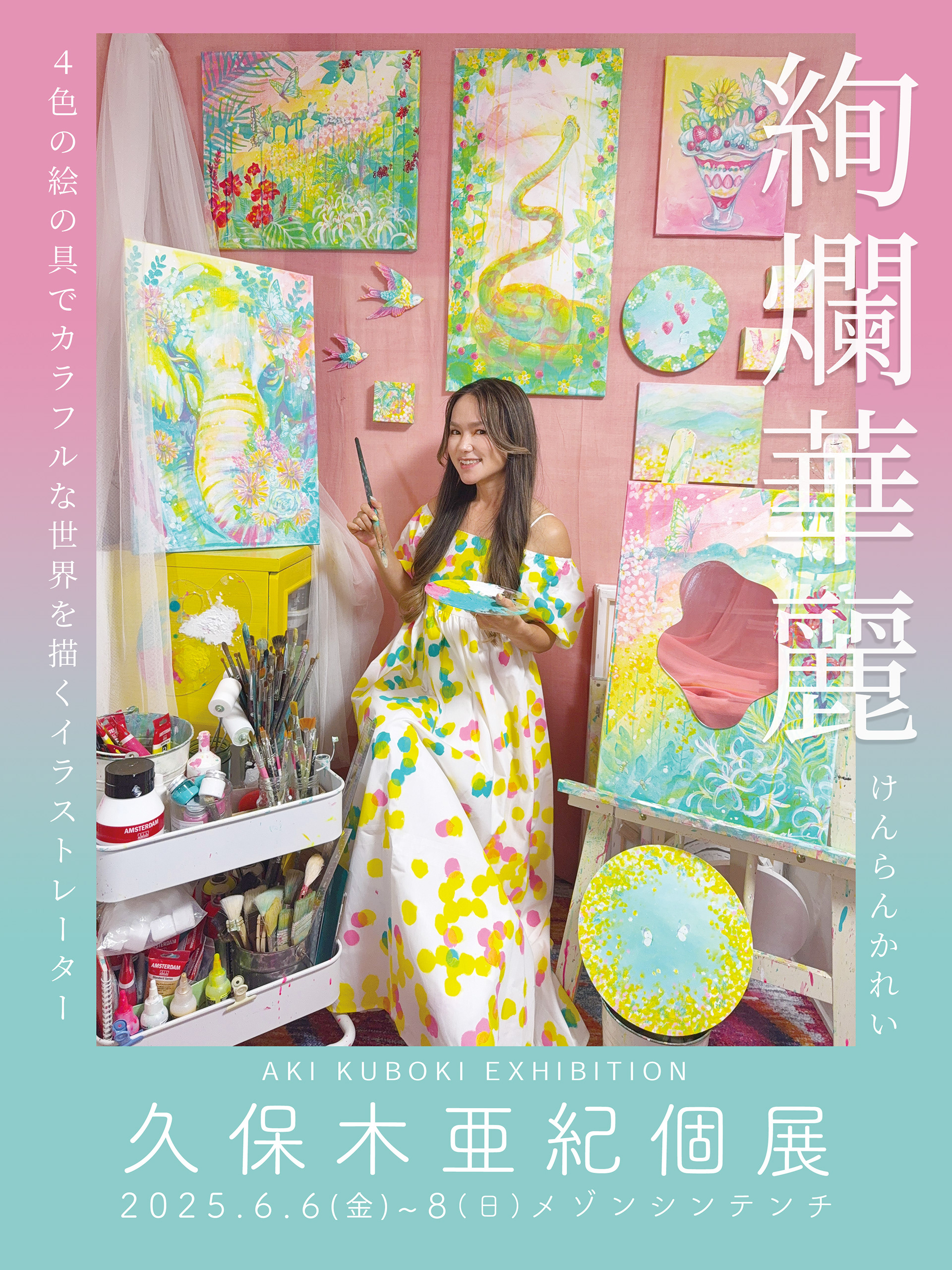 初の名古屋個展のテーマは「絢爛華麗」。動植物をモチーフに明るく幸せな気持ちになれる作品たちが、さらに豪華に華やかに!