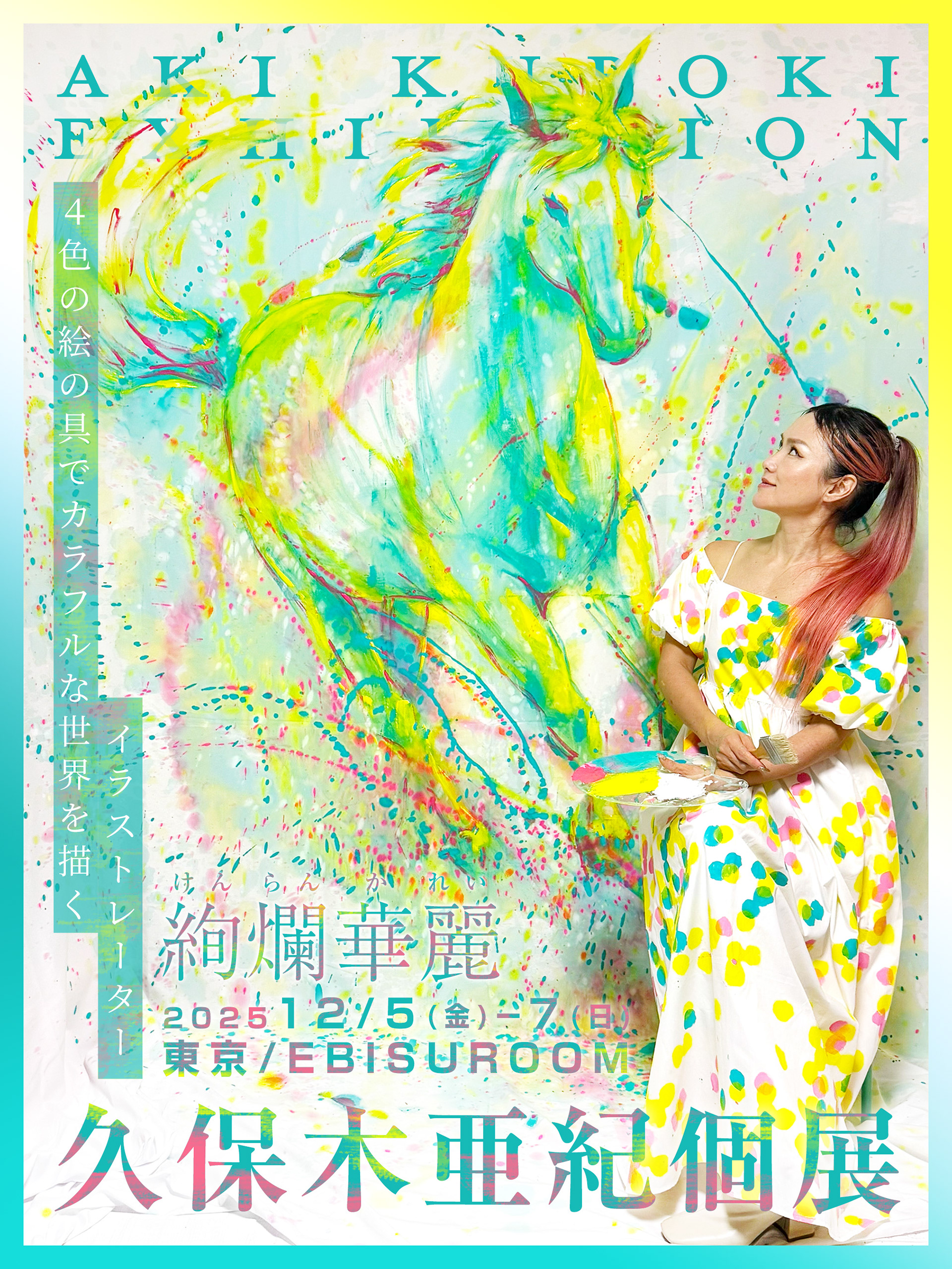 2度目の東京個展開催。春夏の動植物を得意とする久保木亜紀が、初の冬をテーマとしたパーティーアート「クリスマスパーティー」を発表。