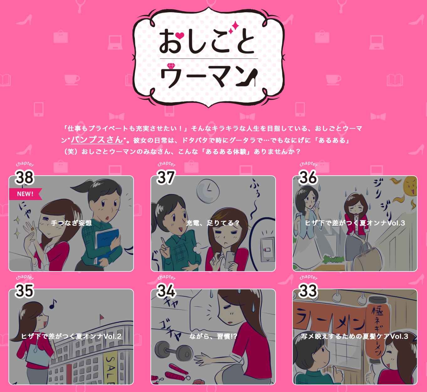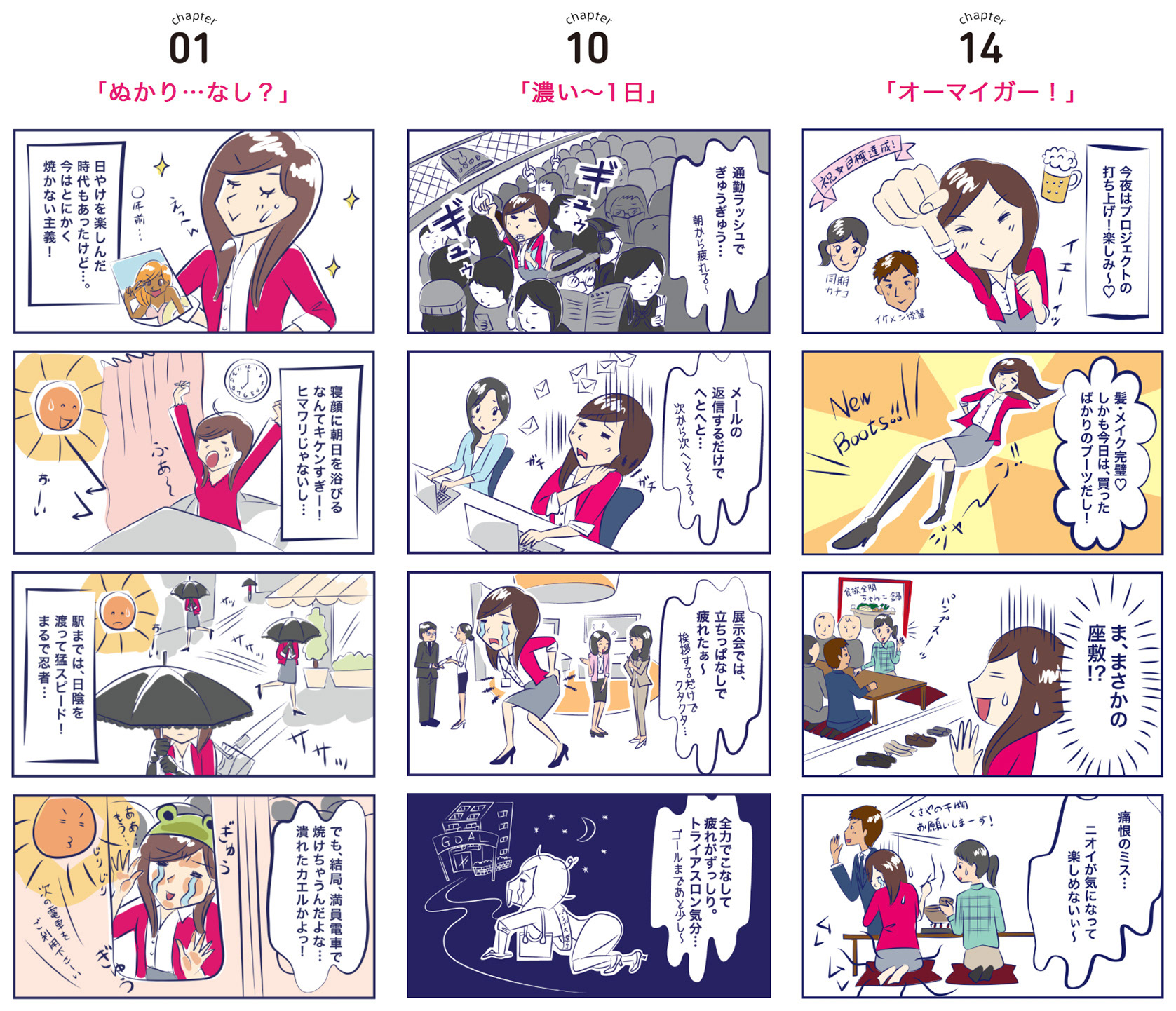 They are the manga for a cosmetic corporation's advertising. The main character is a woman works in a office.
