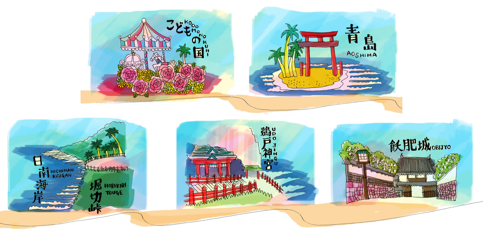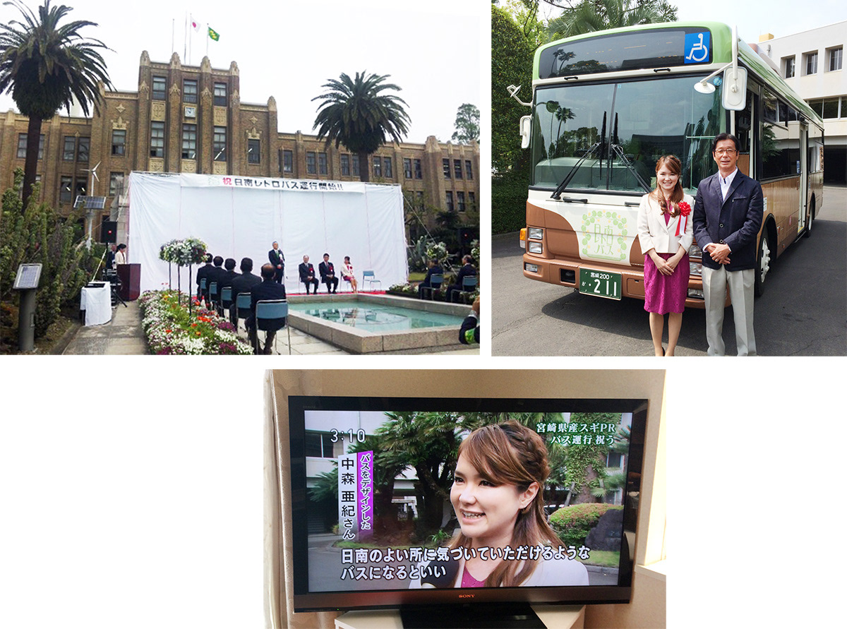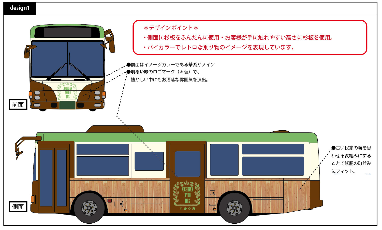 Nichinan woody retro bus is the bus is made with cedar. Cedar is speciality of Niching city. I designed the logo mark, exterior, interior and illustration for the ceiling.
