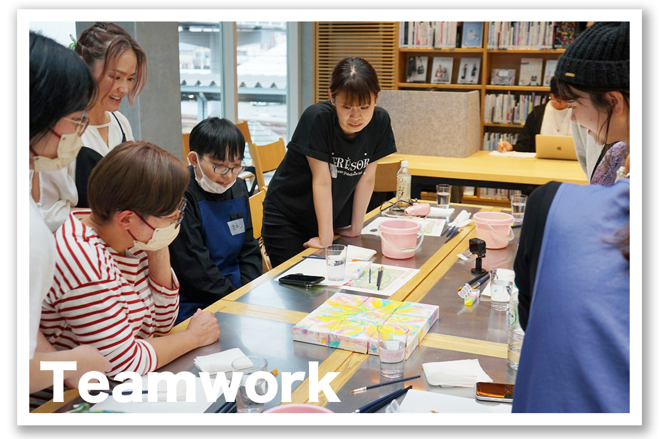 小さなキャンバス(Parts)を組み合わせ、団体(Party)で大きな絵を作るパーティーアートで、圧倒的な魅力と感動を作り出せる「組織力」をアートで楽しく体感。