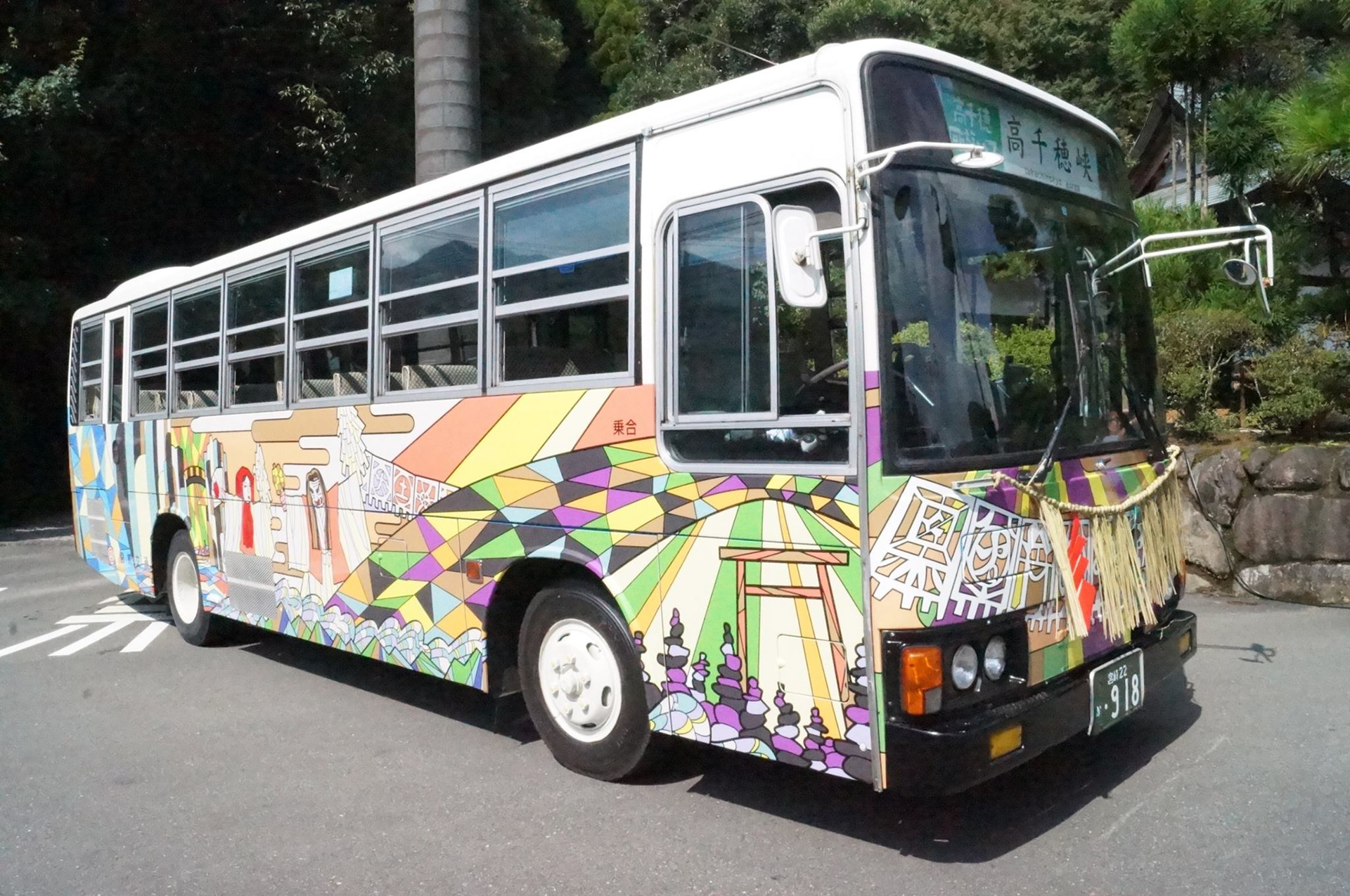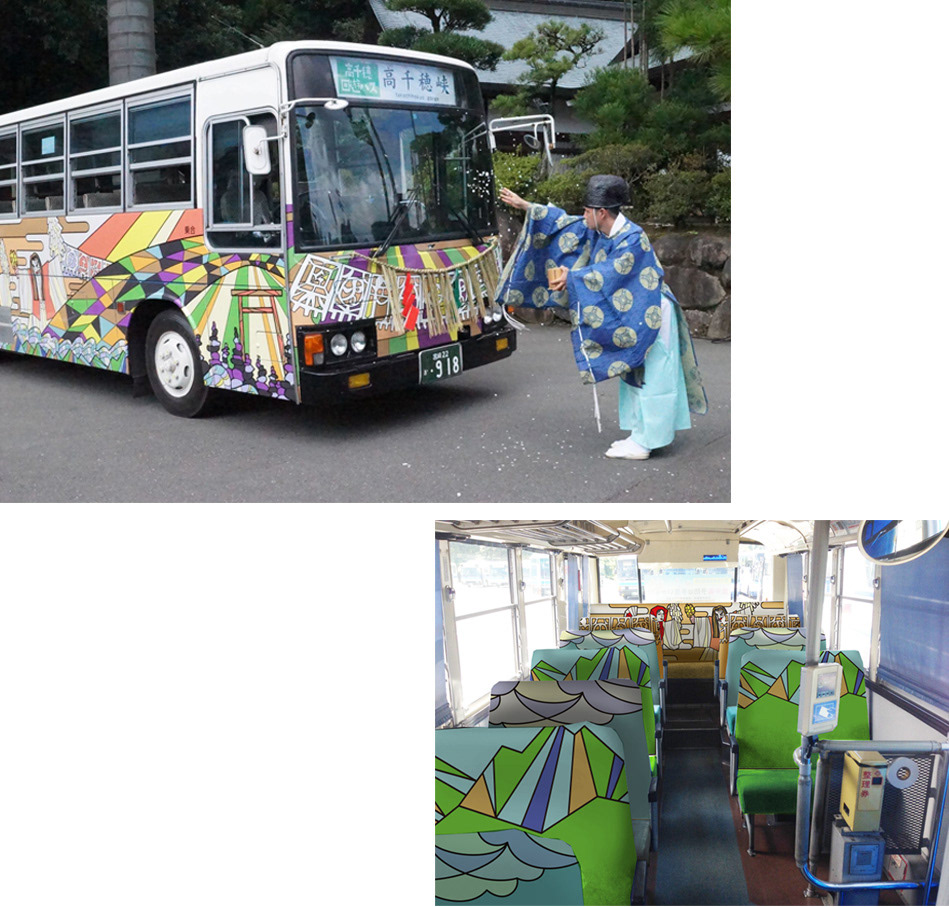 The takachiho bus design. Takachiho is a famous plaice in Japan as sightseeing spot. The design idea comes from mythology and culture of there.